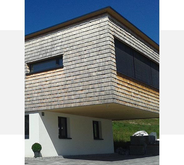 Als erfahrener Zimmereibetrieb mit Spezialisierung auf Schindelbau verfügen wir über das nötige Know-how, um sowohl kleine Einfamilienhäuser als auch großflächige Fassadenlösungen präzise umzusetzen.